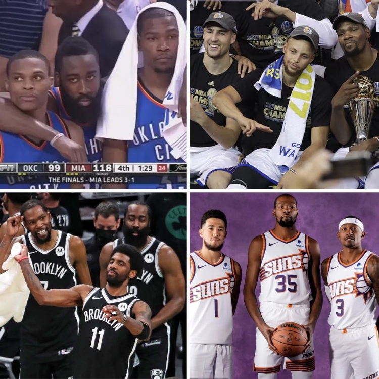8月18日讯 今日,篮球媒体NBA Memes在社交媒体发布动态,谈到了凯文-杜兰特的过往队友。