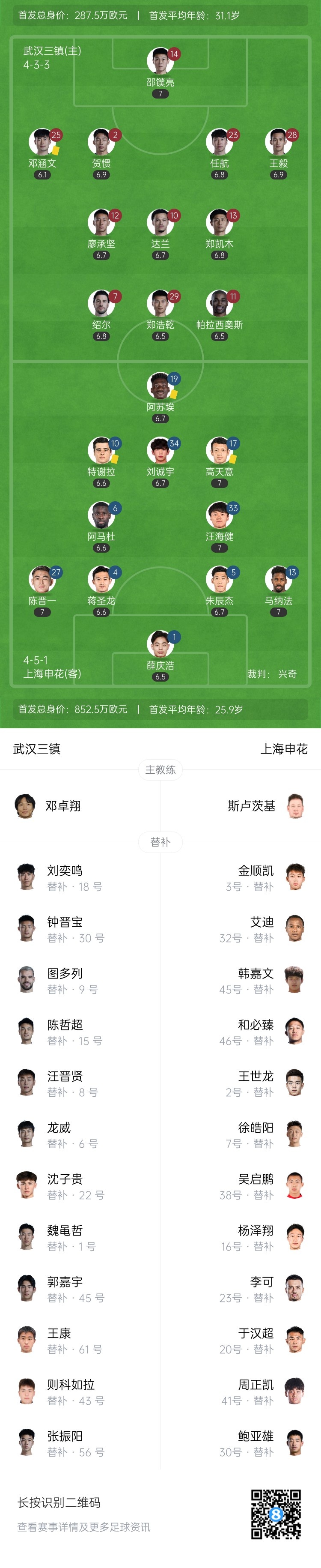 第23分钟,武汉三镇快速反击,王毅左路下底传中,后点邓涵文小角度射门击中横梁↓