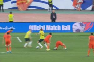 体育资讯03月25日讯 国足vs澳大利亚第16分钟,国足单后腰黄政宇失误,欧文打破僵局。